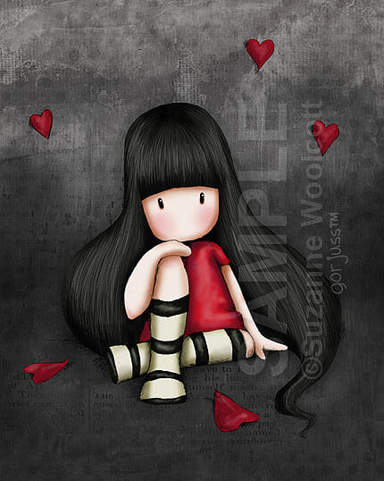 Gorjuss Girls au o poveste extrem de interesantă. Ele au existat mai întâi pe pânză și au locuit în galeriile de artă de la New York, Los Angeles, Hollywood și Hong Kong. Sunt creația artistei scoțiene Suzanne Woolcott, mămică a trei copii, care este imobilizată, de mulți ani, într-un scaun cu rotile. În ciuda faptului că și-a pierdut mobilitatea, Suzanne a continuat să creeze iar în 2010, un parteneriat cu compania Santoro i-a adus, practic, faima internațională. Și-a văzut creațiile transpuse în realitate. Personajele ei au coborât de pe pânză în brațele a milioane de copii.