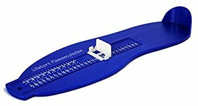 Cum îi măsurăm piciorul: cel mai simplu este să îi punem talpa piciorului pe o foaie de hârtie sau pe un carton și să trasăm, cu un creion, conturul piciorușului, apoi să îl măsurăm cu un centimetru, de la călcâi până la vârful degetului mare.