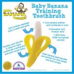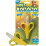 După momentul băiței, urmează spălatul pe dinți. După lungi și minuțioase căutări și documentări, am găsit două produse de care nu ne mai putem despărți. În primul rând, vă spun despre periuța de dinți din silicon, în formă de banană. Se numește Baby Banana este produsă în SUA dar se găsește și în magazinele de la noi și a fost inventată de o mămică dentist. Este extrem de blândă cu gingiile micuțului și foarte ușor de ținut chiar de către copil, datorită toartelor bananei, plus că designul e tare haios și atrăgător pentru pitici.